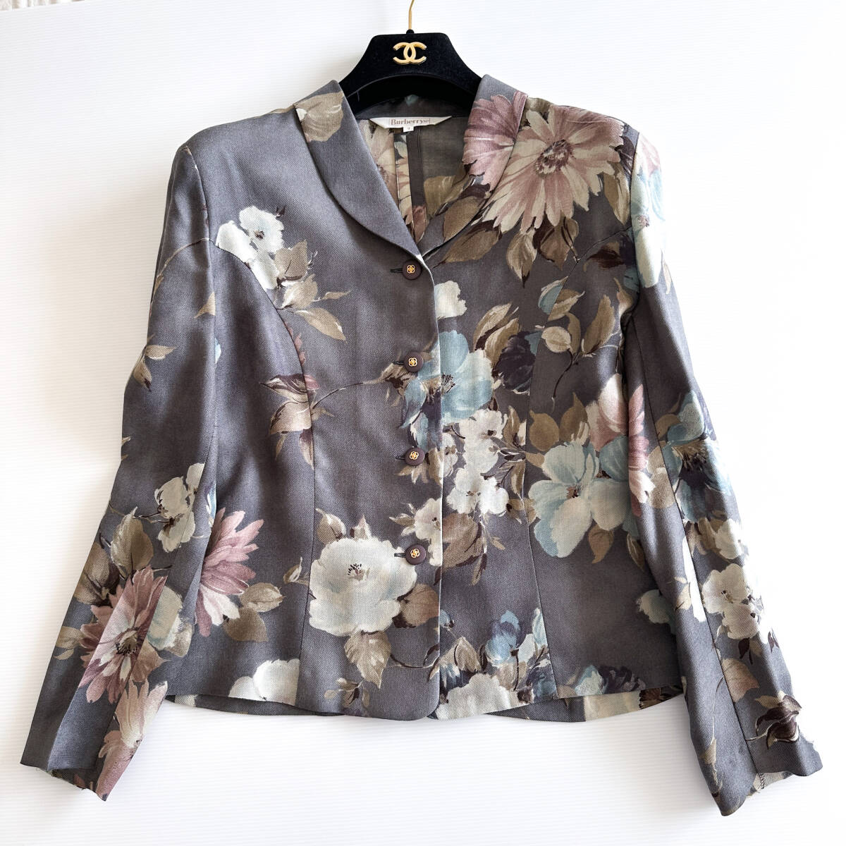 - 【美品】ヴィンテージ Burberrys バーバリーズ / 花柄 ウール ジャケット グレー 7号 総柄 ビンテージ