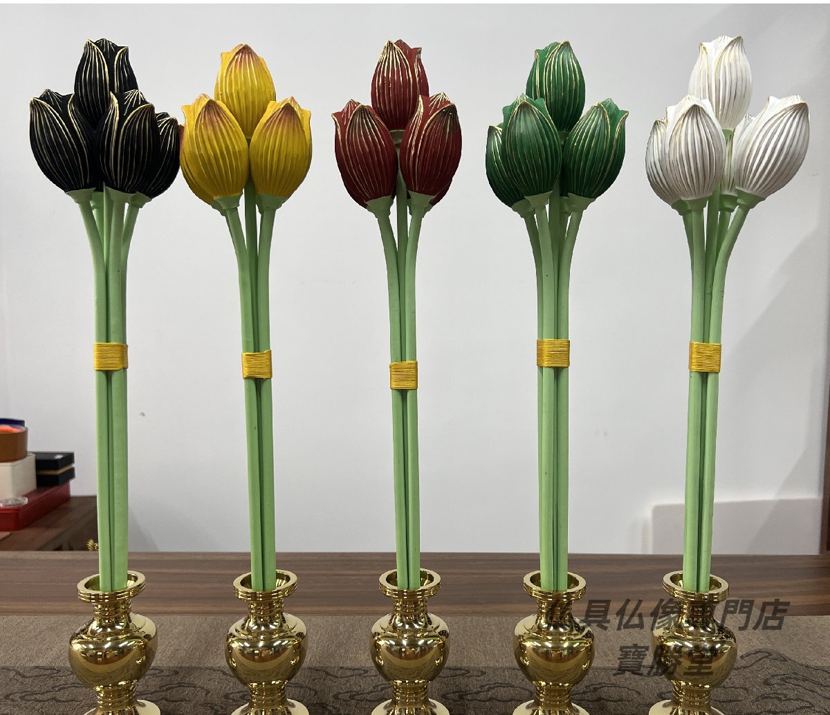 - 五鋲花 五瓶華 五瓶花 ごびょうか 木製 木彫 極彩色 常花 仏具 全長48cm【送料無料】【仏具仏像専門店寶勝堂】