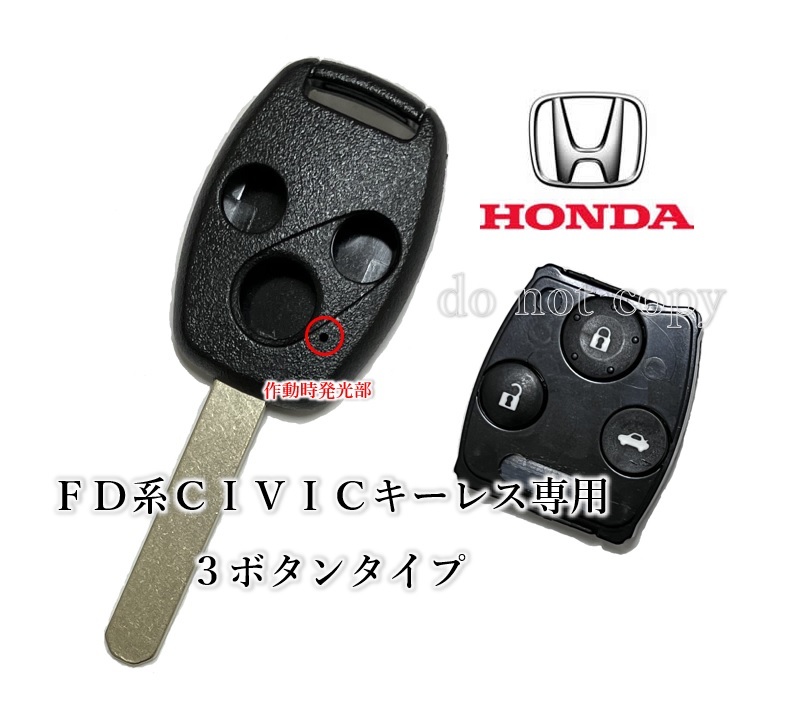 - □ホンダ□ キーレス付 3ボタン FD シビック専用 作製 メインキー・スペアーキー FD1 FD2 FD3