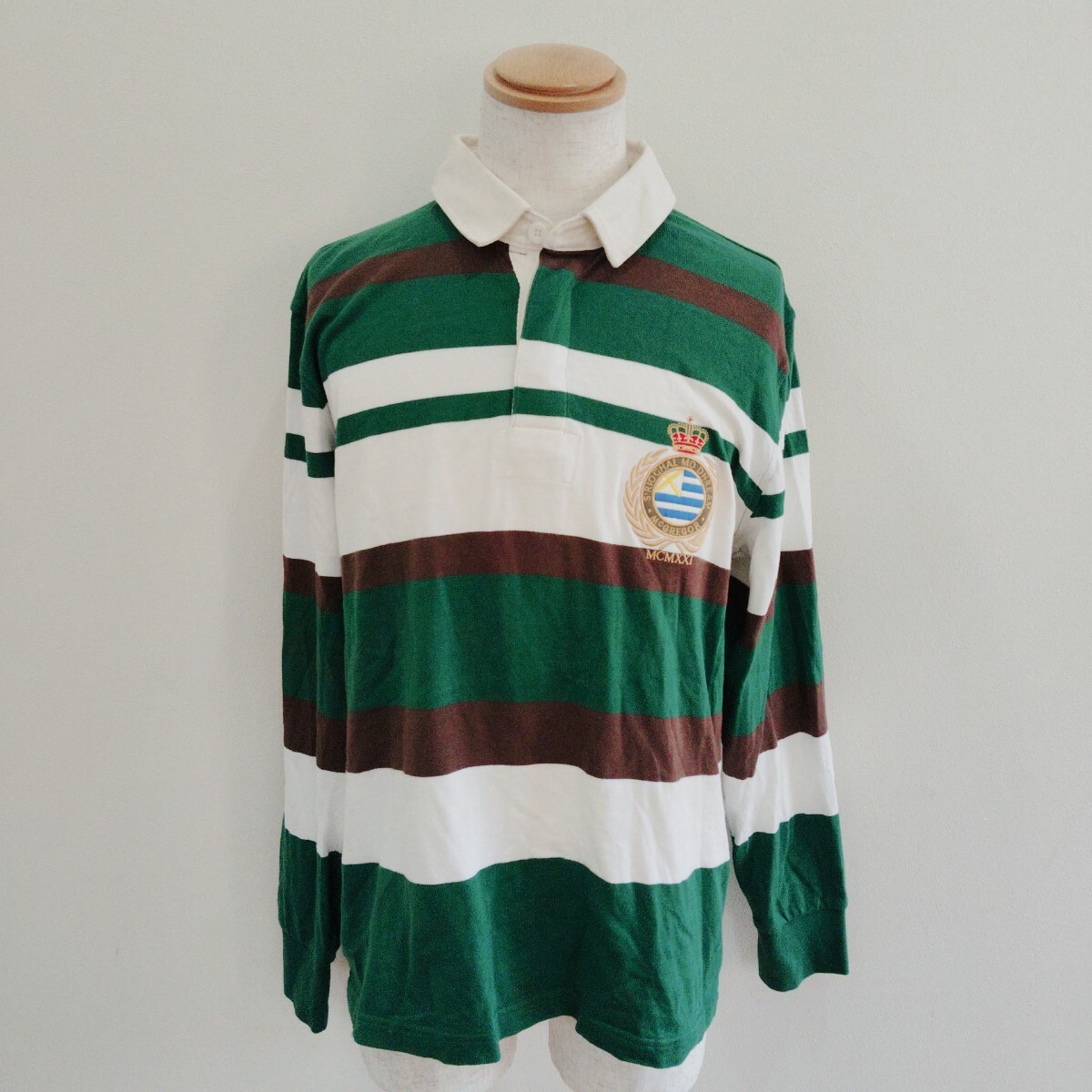 - 0709/LL/MCGREGOR メンズ ポロシャツ 長袖 ラガーシャツ ボーダー グリーン