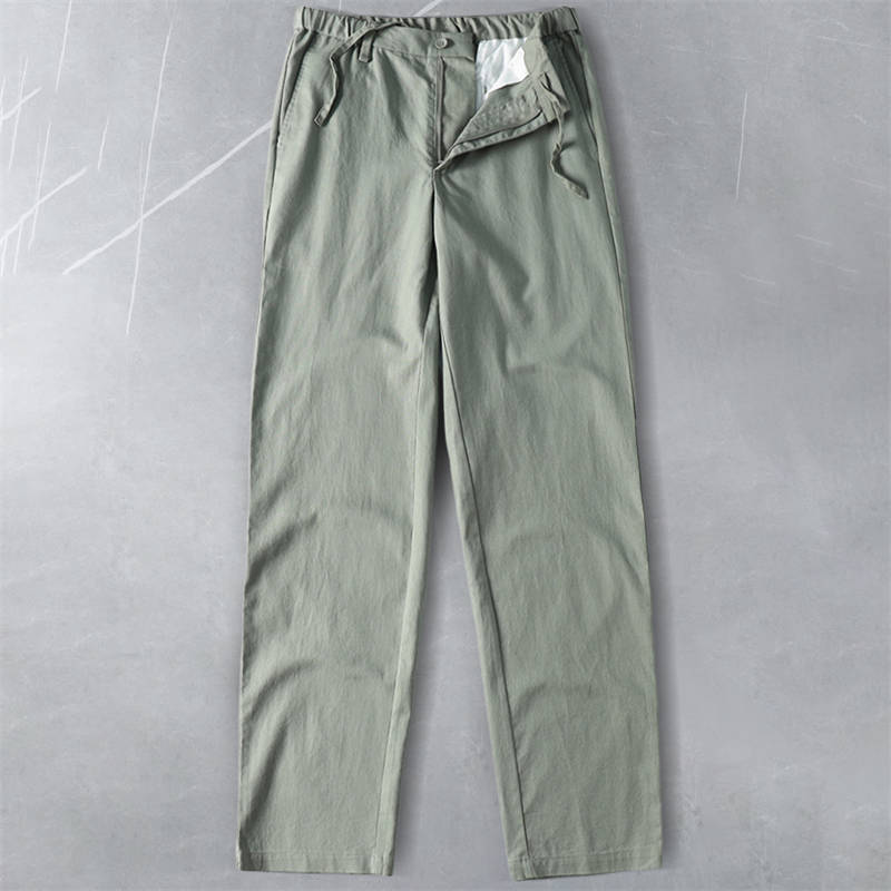- T2220-Lグリーン 新品 コットン リネン サマー ストレートパンツ 接触冷感 抗菌防臭 通気 薄手 春夏 メンズ クールビズ スラックス 盛夏