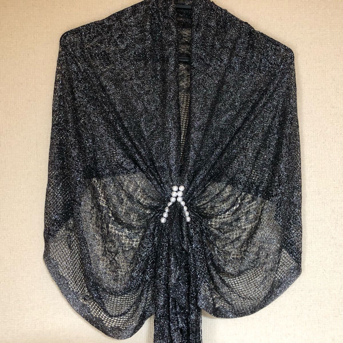 - 未使用保管品 パルムドール レースショール フリンジ 黒のレース/ラメ/フェイクパール(留金) パーティ用等 Palme d Or
