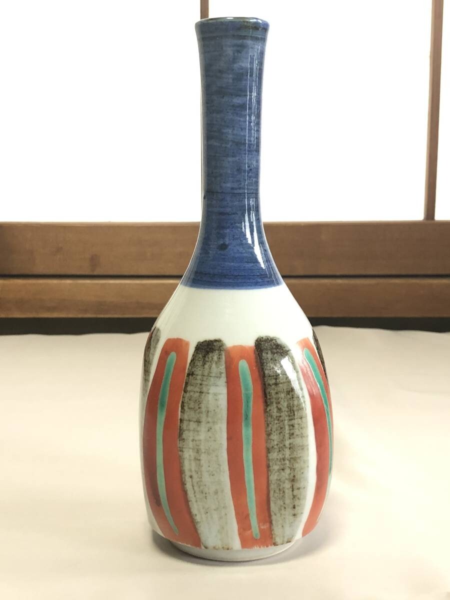 > 【九谷焼】 松屋窯 名工 五代・松本佐一造 『白磁色絵鶴首瓶』 花入/花生/一輪挿し K0326G