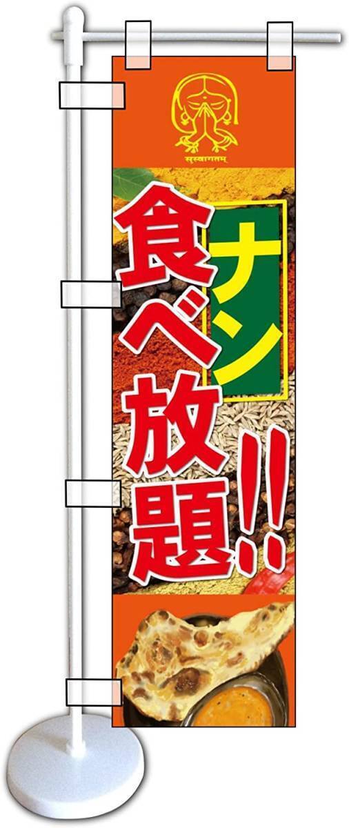 - ミニのぼり旗「ナン食べ放題 ミニのぼり ナン食べ放題 ミニ幟旗 食べ放題 カレーナン 橙色 インド料理 ネパール料理何枚でも送料360円