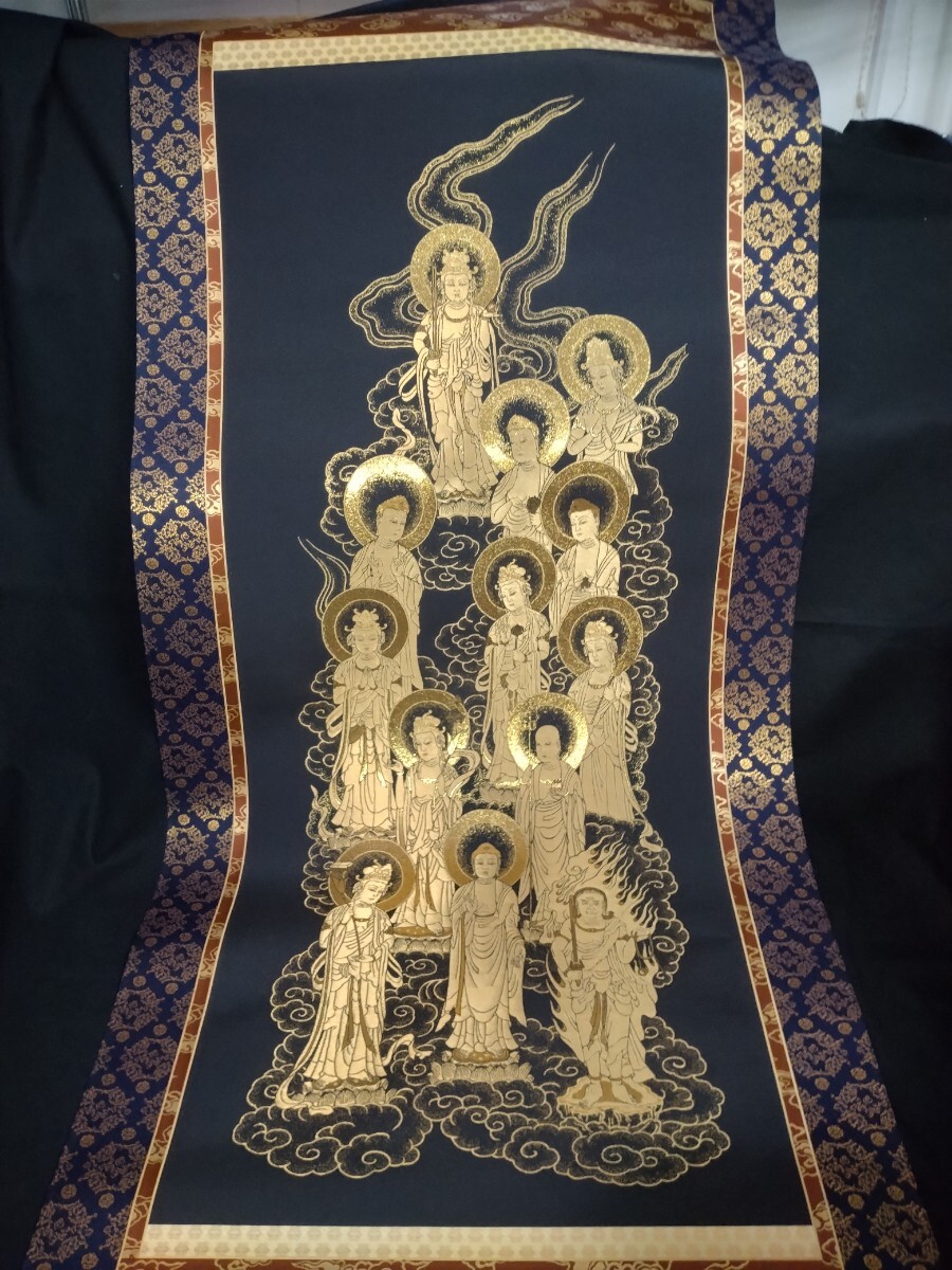 - 【即決】保証書/分析通知書付き 西陣織十三佛 純金糸 高級西陣織 掛軸 太巻 共箱 二重箱 仏教美術 仏画
