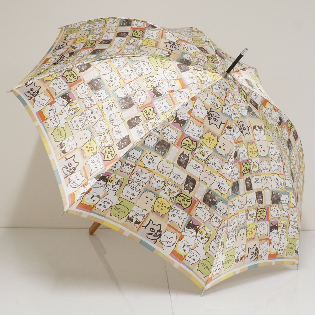 - 傘 Manhattaner’s マンハッタナーズ USED品 ねこ 猫 イラスト 60cm グラス骨 軽量 S2938