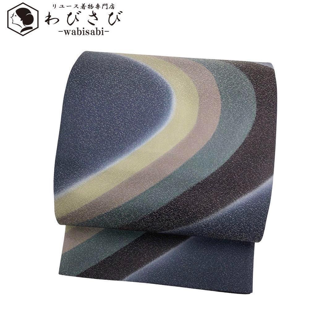 > 袋帯 美しい流水染柄模様 銀通し 印度藍色 ガード加工 O-3435 着物 きもの kimono 和服 和装 中古 リサイクル着物 【送料無料】