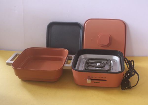 - アイリスオーヤマ IGU-P2-D オレンジ マルチグリル鍋 1~2人用 プレート2枚(深なべ・平面プレート)/26N6.5-19