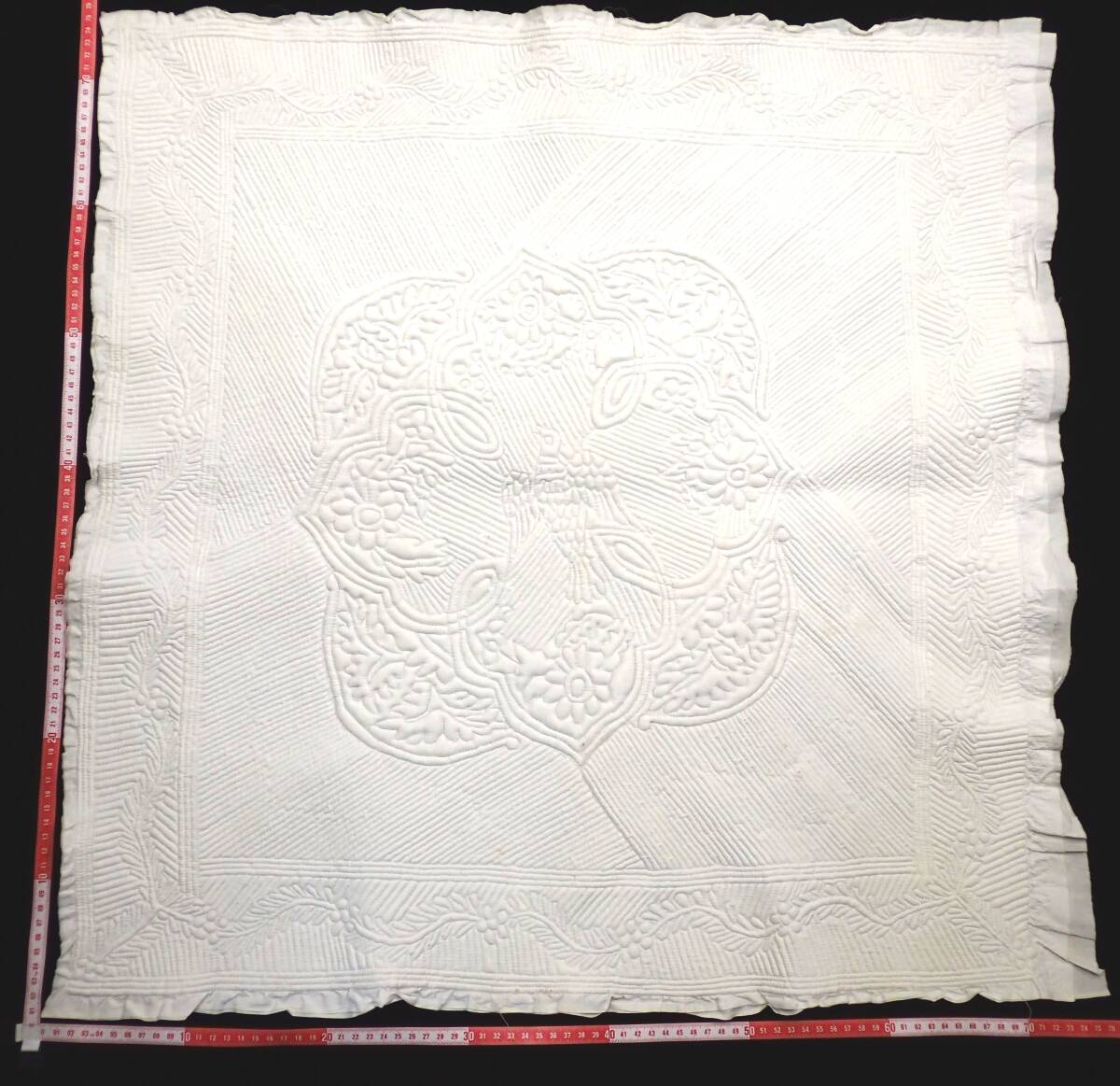 - ブティ 南フランス アンティーク 手刺 ブティ― 刺繍 ホワイトキルト フレンチ 花嫁修業 生地 刺繍 鳥 花キルト ヨーロッパ インテリア
