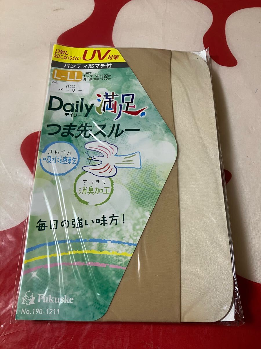 - fukuske daily満足 つま先スルー L-LL UV対策 バーリー マチ付 吸水速乾 パンティストッキング 福助 パンスト panty stocking 消臭加工