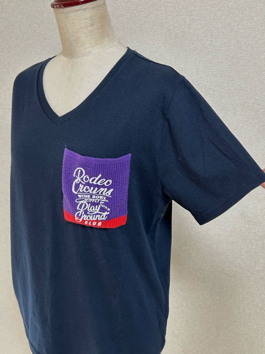 - 【RODEO CROWNS★ロデオクラウンズ】胸ポケット付きVネックTシャツ・ネイビー・Fサイズ・送料180円