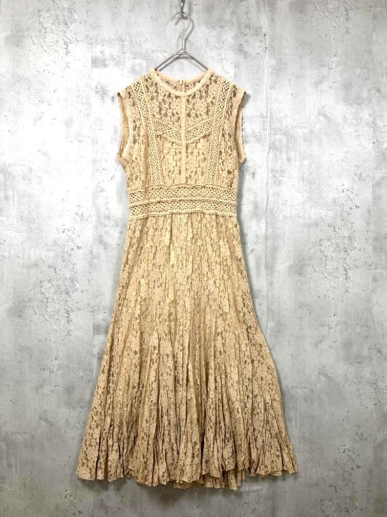 > ゆうパケットOK 美品 COCODEAL ココディール 79515060 定価12000円+税 レースプリーツノースリ ワンピース size1/ベージュ ■◆