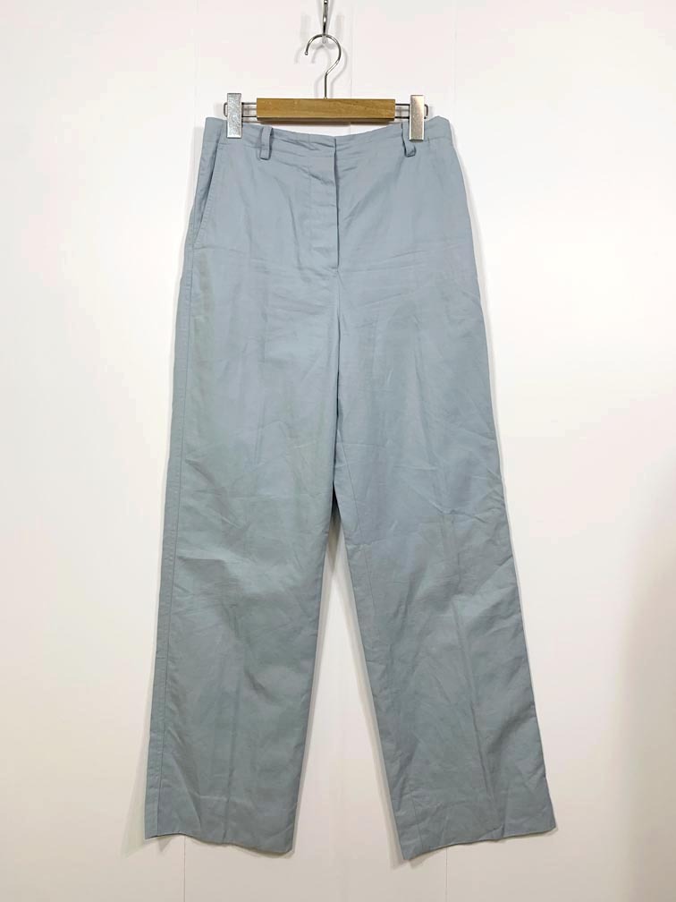 > ゆうパケットOK BACCA バッカ トゥモローランド コットン リネン ボタンフライ ストレート パンツ size34/水色 ■◆