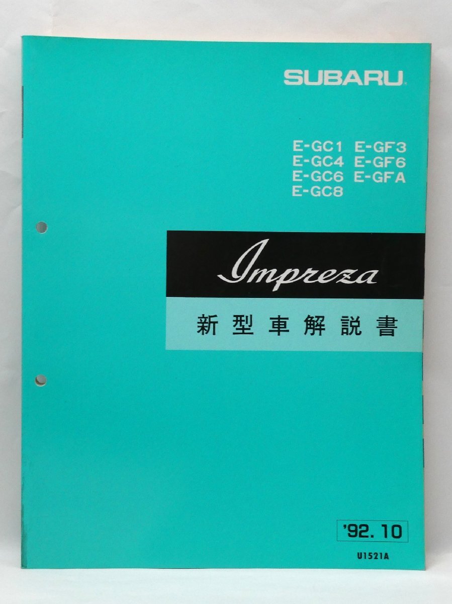 - [W5450] SUBARU IMPREZA 新型車解説書 '92.10 U1521A / スバルインプレッサ E-GC1 E-GC4 E-GC6 E-GC8 E-GF3 E-GF6 E-GFA 中古整備書