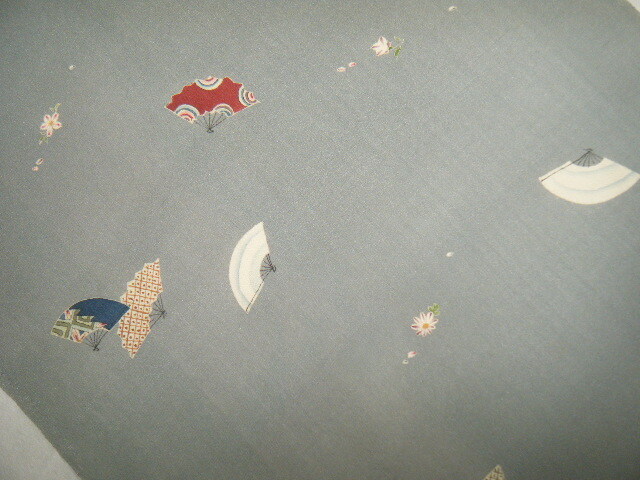 > :布花551:江戸縮緬 正絹 花・色々な扇子などの柄 80㎝×40㎝ 市松人形 縮緬細工 タペストリー パッチワーク 手芸 ハギレ