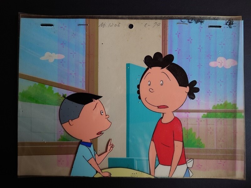 - サザエさん 「タラちゃんの話を聞くサザエさん」 セル画 セル4枚+背景構成