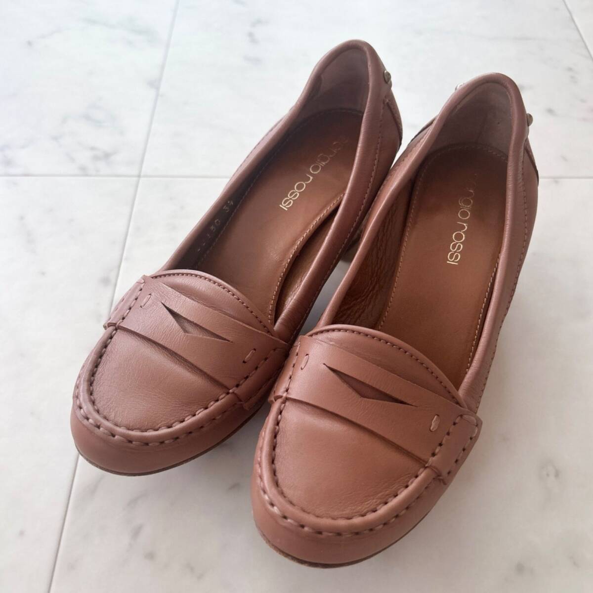 - 美品 Sergio Rossi セルジオロッシ ローファーパンプス 34 キャメルカラー 21.0cm 茶