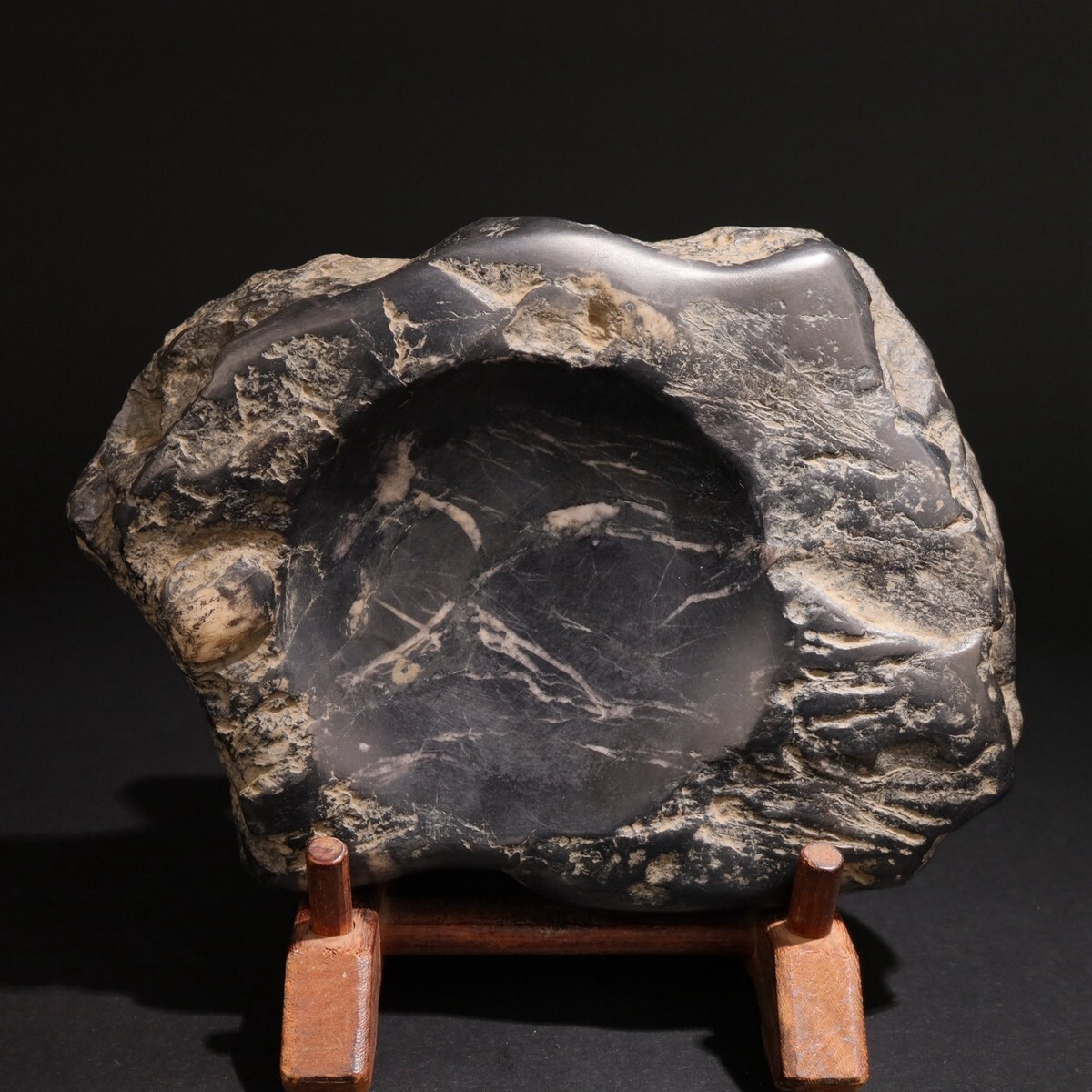- 「古端石硯 天波載舟文房端渓硯 時代物」手彫り 文房四宝 書道具 中国古美術 旧蔵出