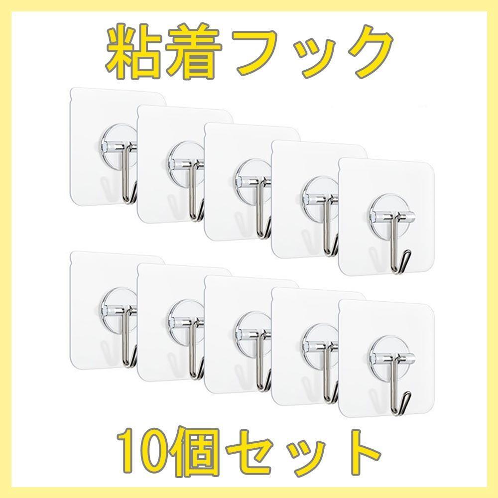- 粘着 フック 壁掛け 防水 吊り下げ 収納 10個 キッチン リビング 洗面所 トイレ 倉庫 透明 高耐久 穴開け不要 まとめ買い