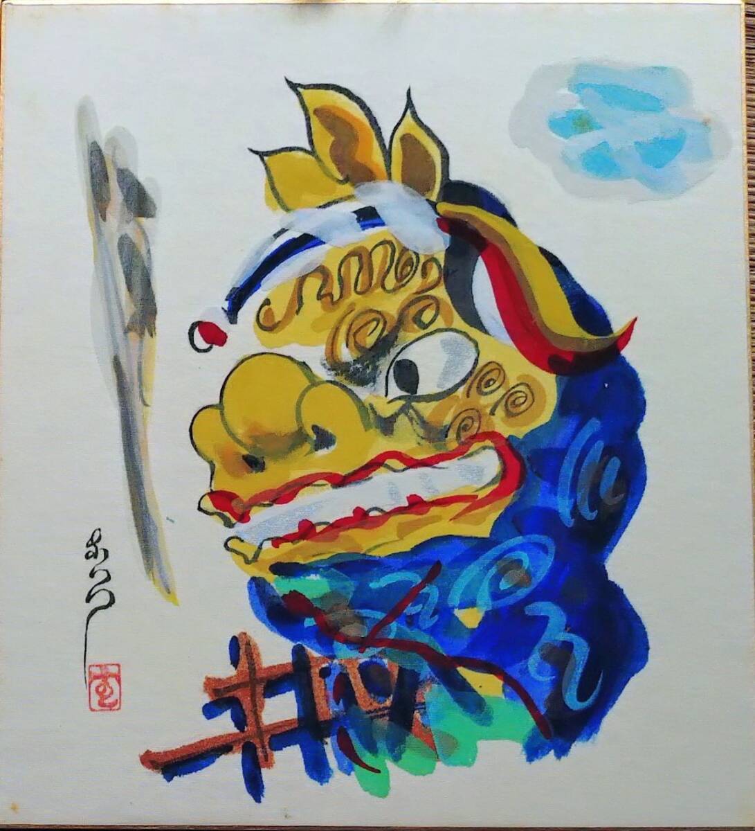 - f25071071〇直筆肉筆画 色紙 獅子頭 楢崎重視先生 揮毫画伯 解説付 昭和46年〇和本古書古文書