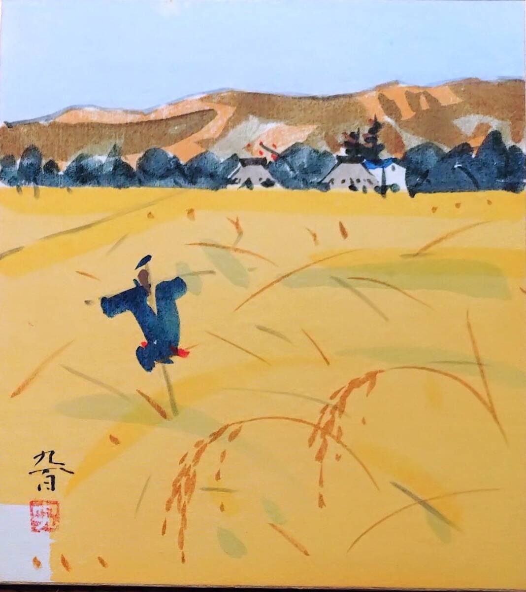 - f25071075〇直筆肉筆画 色紙 実りの秋 太幡九百先生 揮毫画伯 解説付 昭和46年〇和本古書古文書