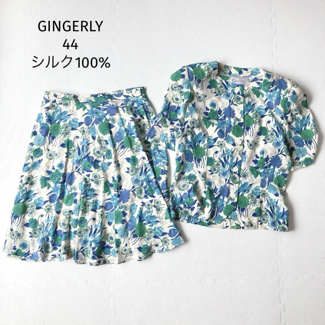 - GINGERLY セットアップ 絹 シルク100%【44】花柄 五分袖 夏