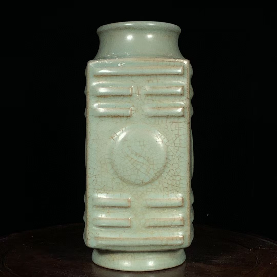 - 磁器 花瓶 秘藏 宋代 汝窯 汝磁 太極八卦琮式瓶 酒器 茶器 唐磁 染付 陶磁器 收蔵品 古美味 時代物 古美術 古置物 希少珍品 中國文玩7.3