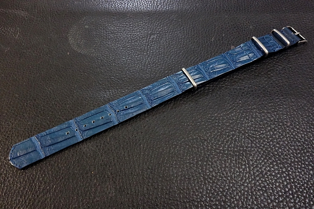 > ◆クロコダイルNATO G10Strap◆北米産クロコダイル Custom Order(ラグ幅/BUCKLE COLOR) 本藍染めINDIGO BLUE 受注生産 ワニ革 腕時計ベルト