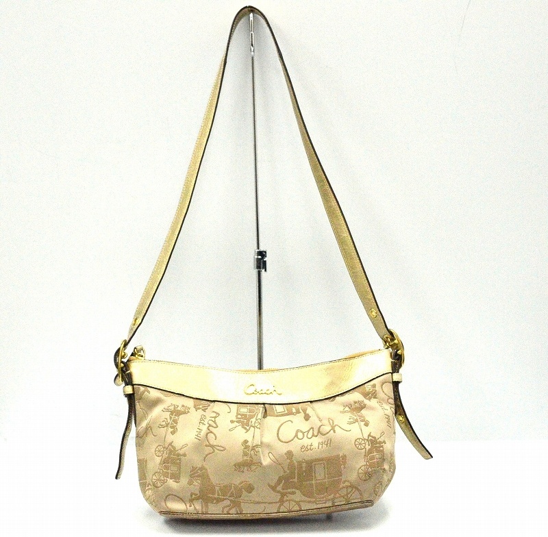 > コーチ(COACH) サテン アシュレイ ホースキャリッジ ショルダーバッグ ゴールド F15654 【中古】 JA-18952