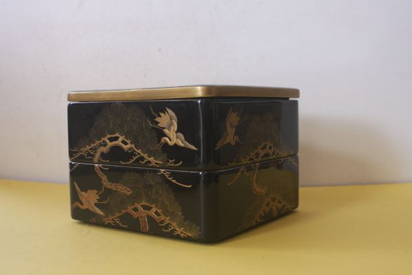 - 輪島塗 二段重箱 鶴・松 二段重 厚みのある金彩 金蒔絵 漆器のお重 /25N5.1-13