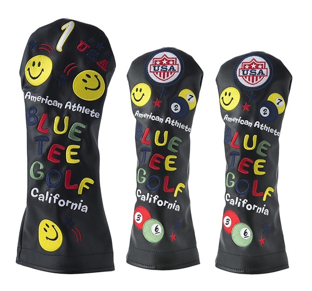 > △オークション♪【SP:3PB-ブラック】ブルーティーゴルフ 【スマイル&ピンボール】3本セット(B)ヘッドカバー 送料無料