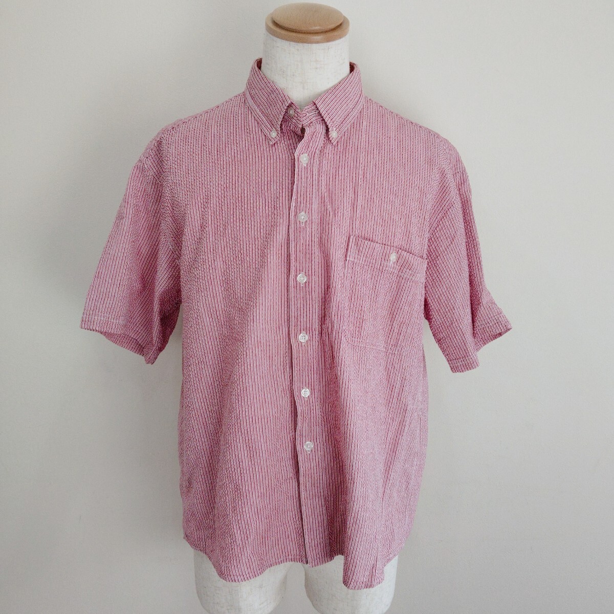 - 0714/L/RODDLE メンズ 半袖シャツ ストライプ柄 レッド