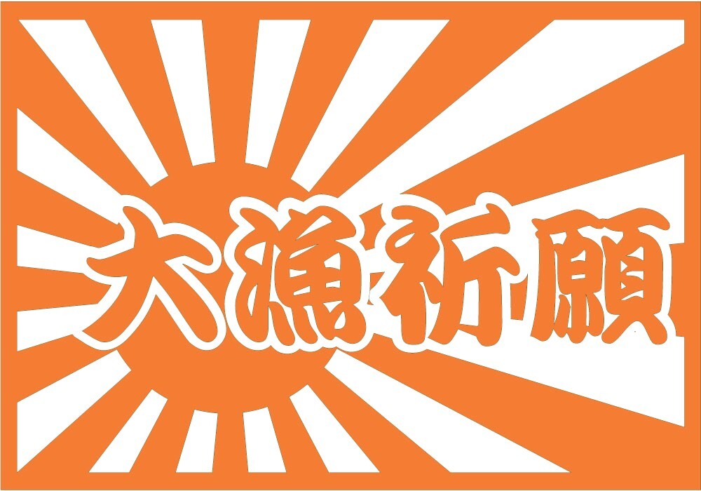 - ステッカー 大漁祈願 日章旗 【オレンジ】【15cm x 10.5cm】 カッティングステッカー 防水 釣り具 クーラーBOX タックルボックス 車 バイク