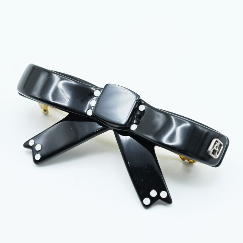 - ALEXANDRE DE PARIS アレクサンドルドゥパリ リボンモチーフ ラインストーン バレッタ ヘアアクセサリー ブラック K07-k098
