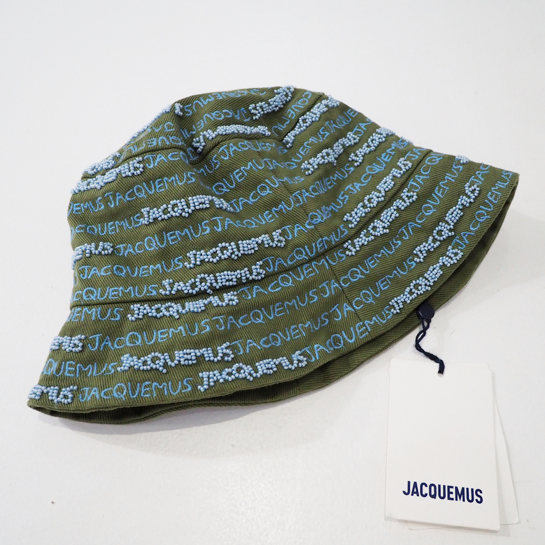 > 新品 定価71170円 ジャックムス 23ss ロゴ ビーズ 刺繍 バケット ハット カーキ 水色 ブルー 56 メンズ レディース S JACQUEMUS 帽子バケハ