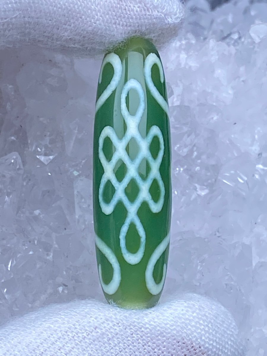 - 即決 0601h146 新入荷★【チベット緑玉髄同心結び天珠】★ 38.5x11.3mm(新品)