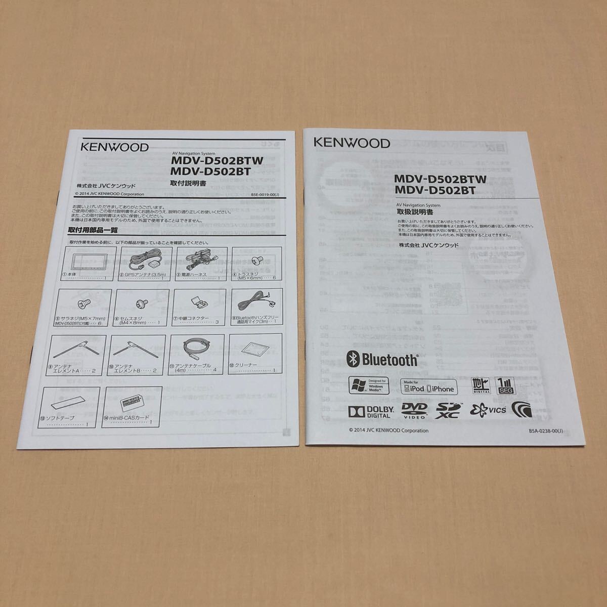 - ケンウッド KENWOOD MDV-D502BTW MDV-D502BT 取扱説明書 取付説明書 2点セット 中古☆
