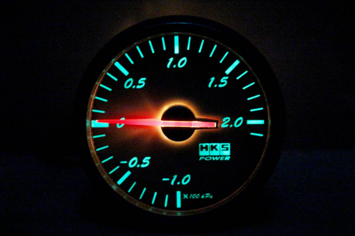 - [希少/絶版/当時物/動作OK!!/送料600円~] HKS 60φ 機械式 ブースト計 TURBO METER 機械式 ホワイト パネル シンプル ターボ メーター