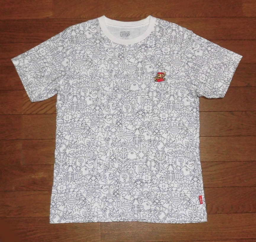 > ユニクロ X 任天堂 コラボ スーパーマリオ 総柄 グラフィック Tシャツ UTGP デザイン コンペティション モデル 刺繍マーク WHT S USED 美品