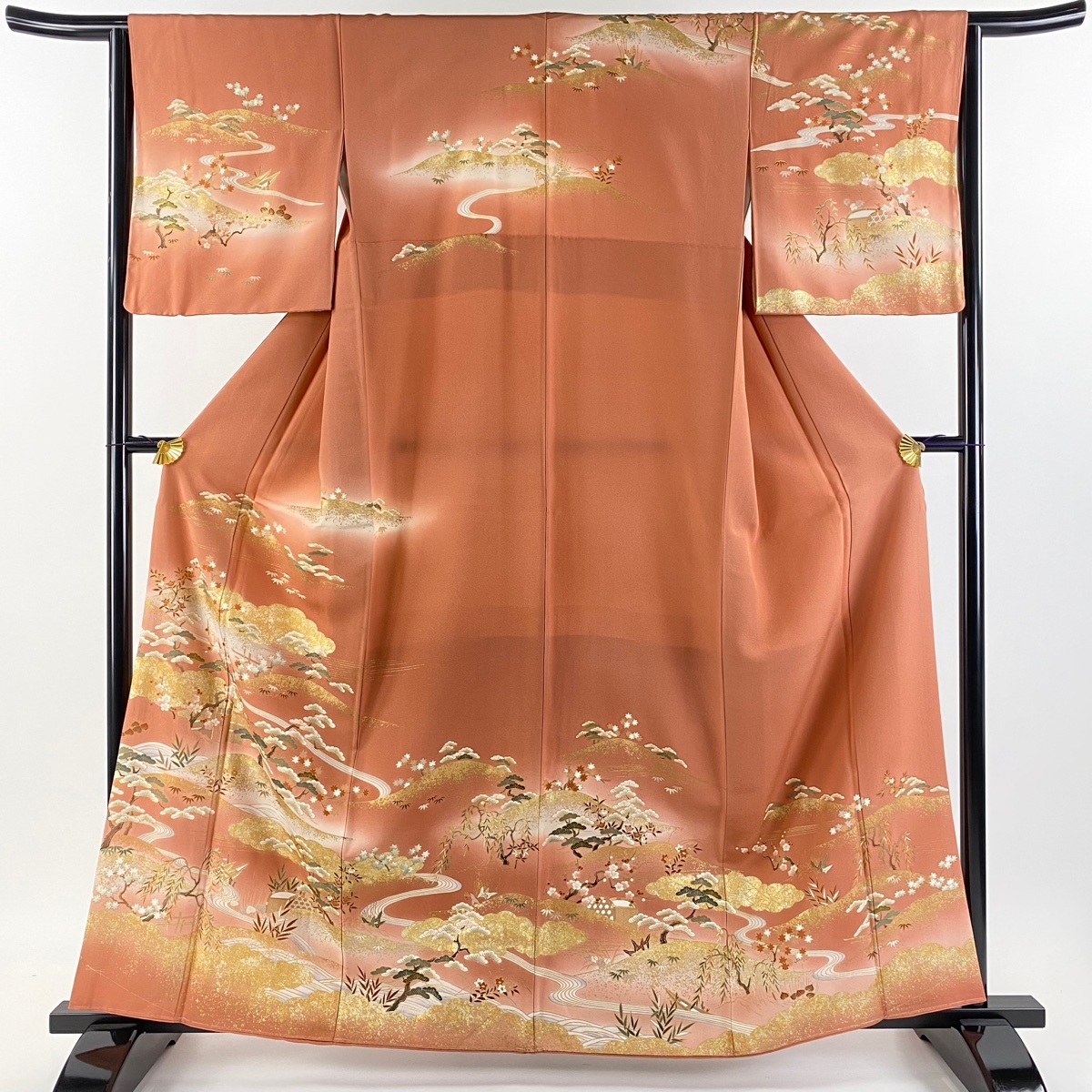 - 訪問着 身丈161cm 裄丈63.5cm S 袷 松竹梅 雲文 金糸 金彩 サーモンピンク 正絹 秀品 【中古】