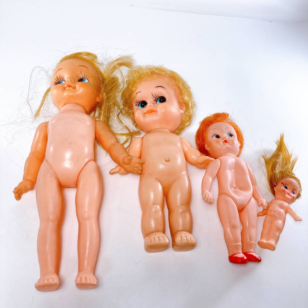 - |1660|【レトロ】 ソフビ 着せ替え人形 4体 昭和レトロ・アンティーク・当時物・女の子