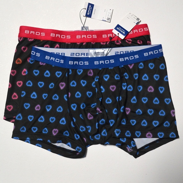 - ★【BROS ブロス】ネオンハート柄 ボクサーパンツ(前閉じ) GT3124 BUとREのセット Lサイズ