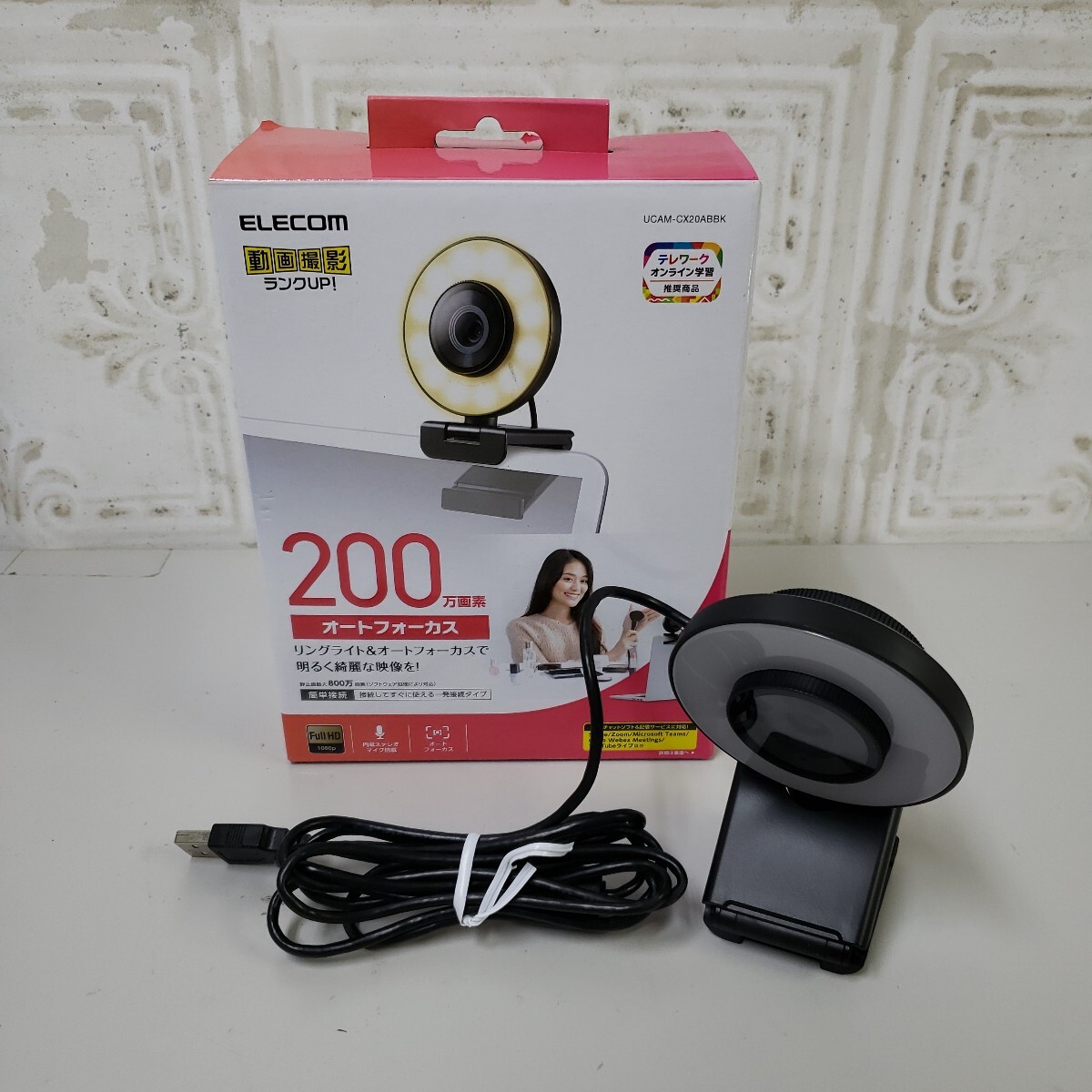 - 707y1607★エレコム Webカメラ オートフォーカス 200万画素 60FPS Full HD LEDリングライト搭載プライバシーシャッター付UCAM-CX20ABBK