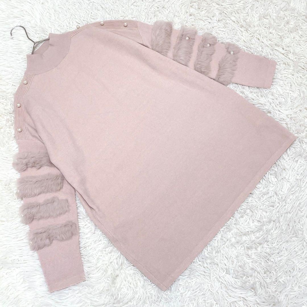 - 『O'gam studios』 (M-L) 袖ファーハイネックセーター パール