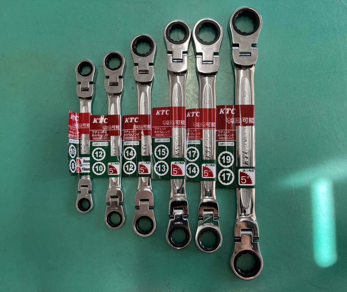 - 【新品未使用品/6点セット】KTC ラチェットめがねレンチ 両頭型首振りタイプ LMR1-0810F・LMR1-1719F 6点セット 9028