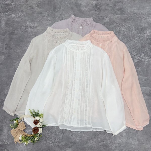 > yh トップス チュニック ラフ フリーサイズ 麻100% ナチュラル サラサラ 通気性肌触り抜群 大人可愛 冷房紫外線対策 レース パープル系