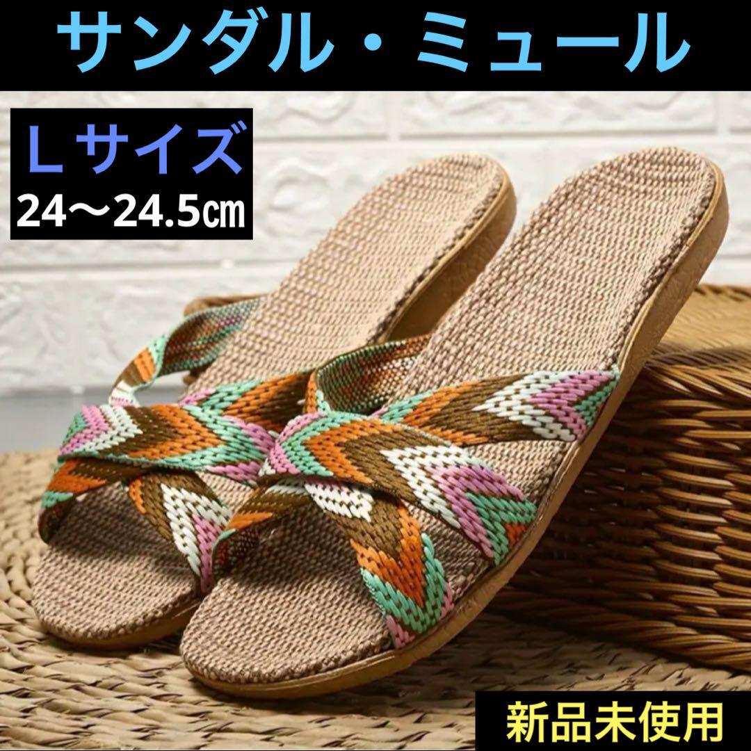 - ルームシューズ スリッパ リネン サンダル ミュール EVAソール 室内履き 女性 軽量 サマーファッション フラットサンダル カジュアル