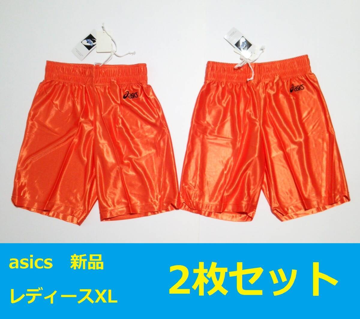 > 新品 asics アシックス ★2枚セット/刺繍ロゴ/日本製★ ゲームパンツ ショーツ ハーフパンツ ショートパンツ オレンジ レディースXL