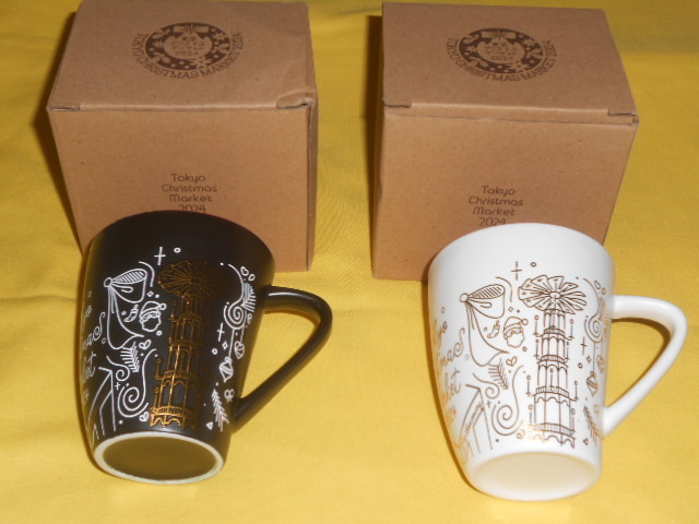 > 新品!即決★東京クリスマスマーケット 2024 ノベルティマグカップペア 白&黒(内側赤)
