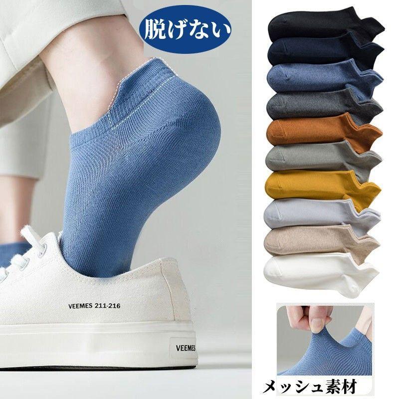 > 靴下 メンズ スニーカーソックス ショートソックス くるぶし 春夏秋 スポーツソックス 綿 抗菌防臭メッシ 脱げない 22.5-27.5cm 10足セット